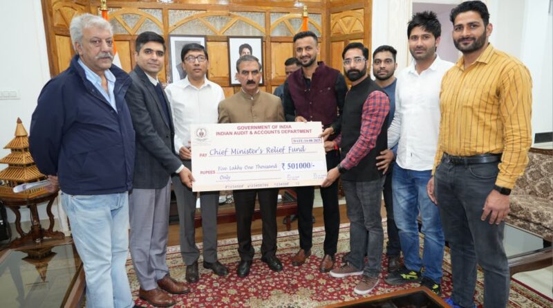 प्रधान महालेखाकार (लेखा व हकदारी) शिमला सुशील ठाकुर ने कार्यालय के अधिकारियों व कर्मचारियों की ओर से आपदा राहत कोष के लिए मुख्यमंत्री ठाकुर सुखविंद्र सिंह सुक्खू को पांच लाख एक हजार रुपये का चेक भेंट किया।
