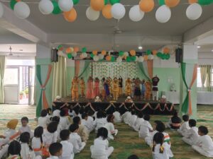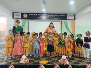 इसी क्रम में विद्यालय में जन्माष्टमी भी उल्लासपूर्वक मनाई गई। नन्हे-कन्हैया और राधा की वेशभूषा में सजे बच्चों ने रास-लीला, भजन-संगीत, कृष्ण-सुदामा संवाद, और ‘मटकी-फोड़’ (दही-हांडी) का प्रतीकात्मक कार्यक्रम प्रस्तुत किया। जिनसे बच्चों में भारतीय संस्कृति, सहयोग और आनंद के मूल्य दृढ़ हुए।