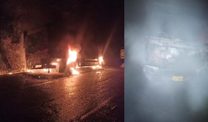 शिमला के ठियोग क्षेत्र के गल्लू मंदिर के पास बीती रात उस समय हड़कंप मच गया जब सेब से भरा चलता ट्रक (UP 70LT 1585) अचानक आग की चपेट में आ गया। ट्रक में उस समय दो लोग ड्राइवर अनिल और कंडक्टर विमलेश कुमार सवार थे। जैसे ही उन्हें ट्रक से धुआं और लपटें उठती दिखीं, दोनों ने तुरंत बाहर निकल कर अपनी जान बचाई। इस घटना में कोई जानी नुकसान नहीं हुआ।
