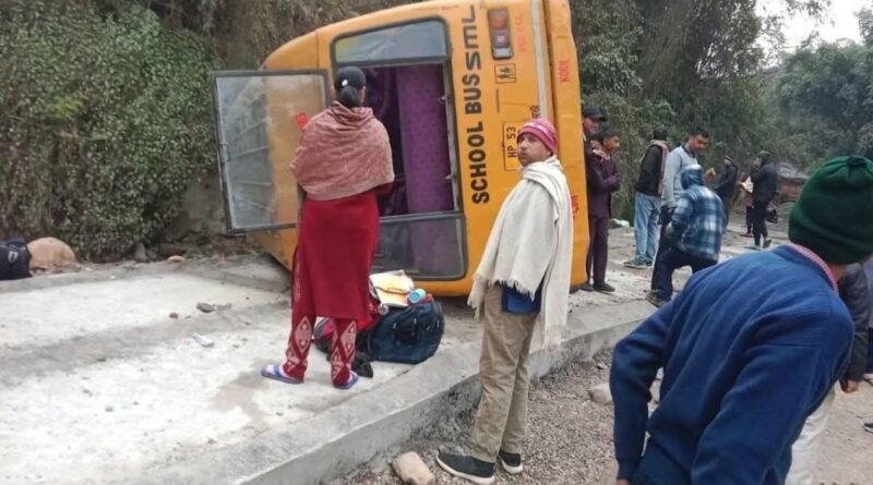 हिमाचल प्रदेश के कांगड़ा जिले के पालमपुर क्षेत्र में मंगलवार को एक सड़क हादसा सामने आया है। यहां एक निजी स्कूल की बस हादसे का शिकार होकर सड़क पर पलट गई। इस दुर्घटना में 6 स्कूली बच्चों सहित कुल 10 लोग घायल हो गए हैं, जिनमें 4 शिक्षक भी शामिल बताए जा रहे हैं।