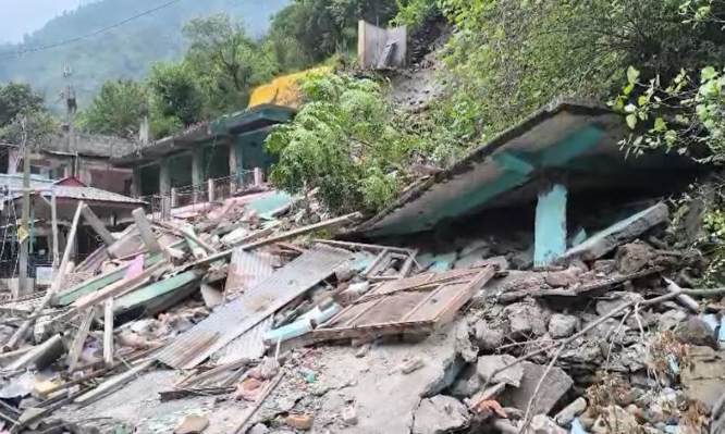 बालीचौकी में रात को भरभरा कर गिरा दो लोगों का 30 कमरों का मकान