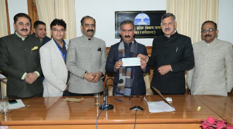 नगर नियोजन, आवास एवं तकनीकी शिक्षा मंत्री राजेश धर्माणी ने आज जिला कांगड़ा के धर्मशाला में हिमुडा की ओर से मुख्यमंत्री ठाकुर सुखविंद्र सिंह सुक्खू को सुख आश्रय कोष के लिए 11 लाख रुपये का चेक भेंट किया।