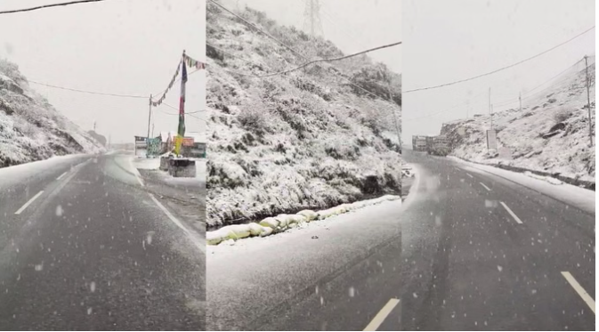 हिमाचल प्रदेश के उच्च पर्वतीय क्षेत्रों में बर्फबारी का दाैर जारी है। बर्फबारी के कारण दारचा-शिंकुला, दारचा- बारालाचा और कोकसर-लोसर सड़क वाहनों की आवाजाही के लिए बंद हो गई है। वहीं लाहौल घाटी में रात से बर्फबारी हो रही है। जबकि राजधानी शिमला सहित कुल्लू व अन्य भागों में बारिश का दौर जारी है। इससे ऊंचाई वाले क्षेत्रों में ठंडक बढ़ गई है। रोहतांग दर्रा, अटल टनल के नॉर्थ पोर्टल, दारचा, जिस्पा और सेवन सिस्टर पीक में भी ताजा बर्फबारी हुई है। बारालाचा, शिंकुला व कुंजम दर्रा समेत ऊंची चोटियां भी सफेद हो गईं हैं।माैसम विज्ञान केंद्र शिमला की ओर से प्रदेश के चार जिलों चंबा, कांगड़ा, कुल्लू और मंडी, ऊना हमीरपुर व बिलासपुर में आज 60 किलोमीटर प्रति घंटे की रफ्तार से अंधड़ चलने के साथ भारी बारिश का ऑरेंज अलर्ट जारी किया गया है। बाकि जिलों में येलो अलर्ट है। 7 अक्तूबर को कांगड़ा, मंडी, चंबा, ऊना, कुल्लू, बिलासपुर और हमीरपुर जिले में भारी बारिश का येलो अलर्ट जारी किया गया है। बर्फबारी से रविवार को लेह-मनाली हाईवे सुबह से दोपहर तक छह घंटे बंद रहा। बारालाचा और शिंकुला दर्रे पर कई वाहन फंस गए हैं।