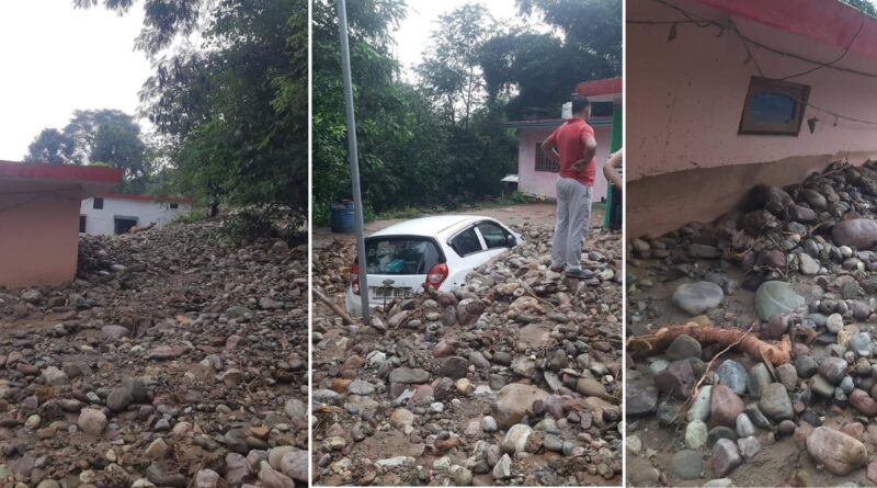 सुजानपुर में भारी बारिश से तबाही, घरों तक आया मलबा, पुली से लुढ़की कार