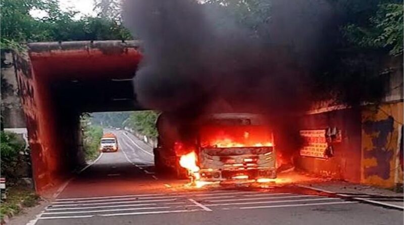 हाईवे पर जा रहे सीमैंट से भरे टैंकर के कैबिन में लगी भीषण आग, ड्राइवर ने कूदकर बचाई जान